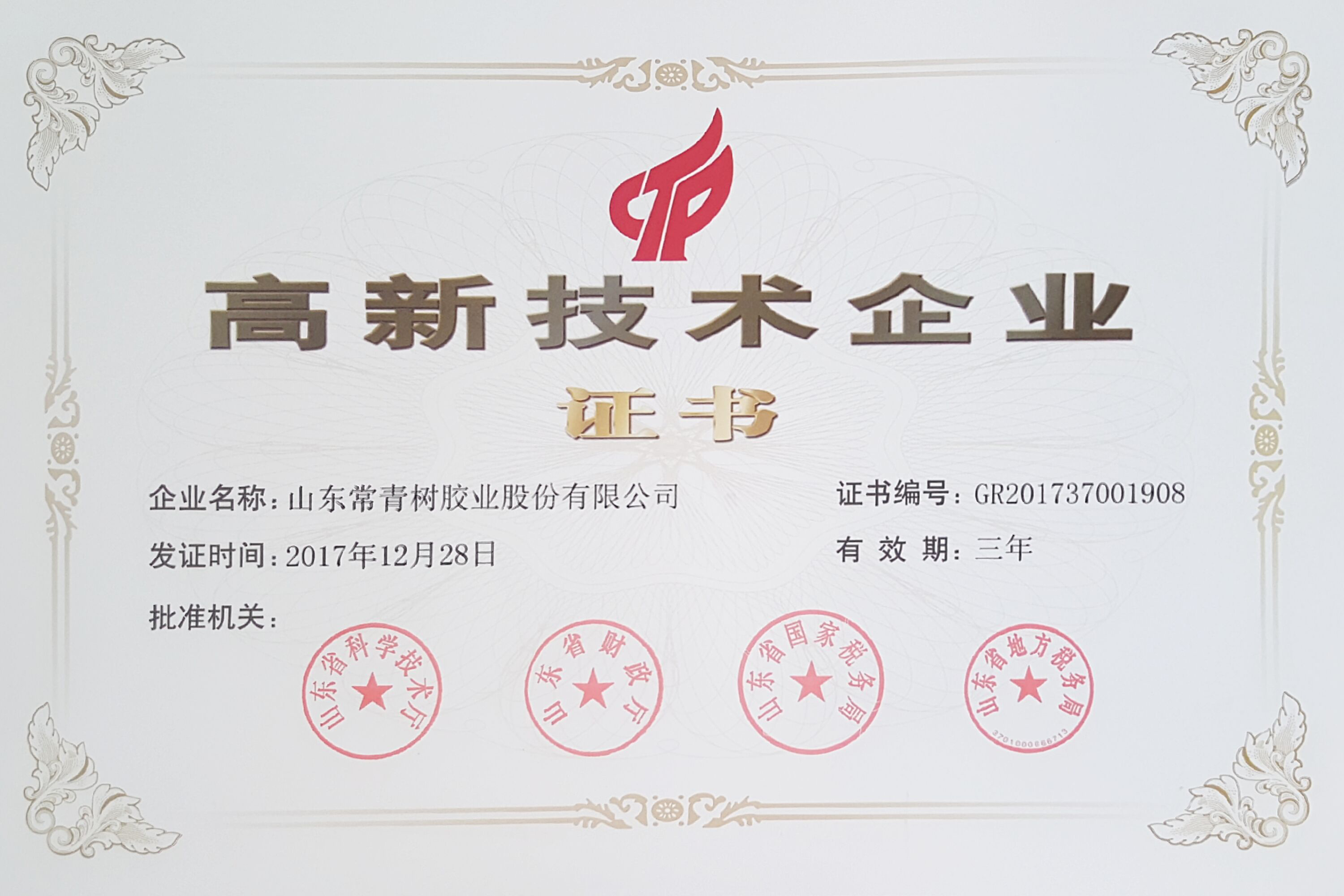 榮譽(yù)認(rèn)證 - 關(guān)于常青樹(shù) - 關(guān)于我們 - 常青樹(shù)膠業(yè)股份有限公司